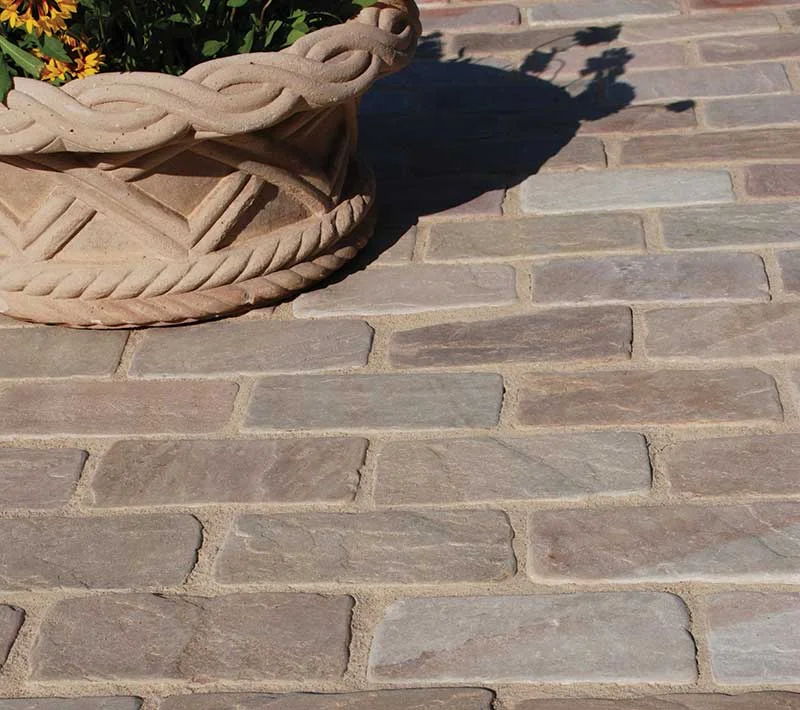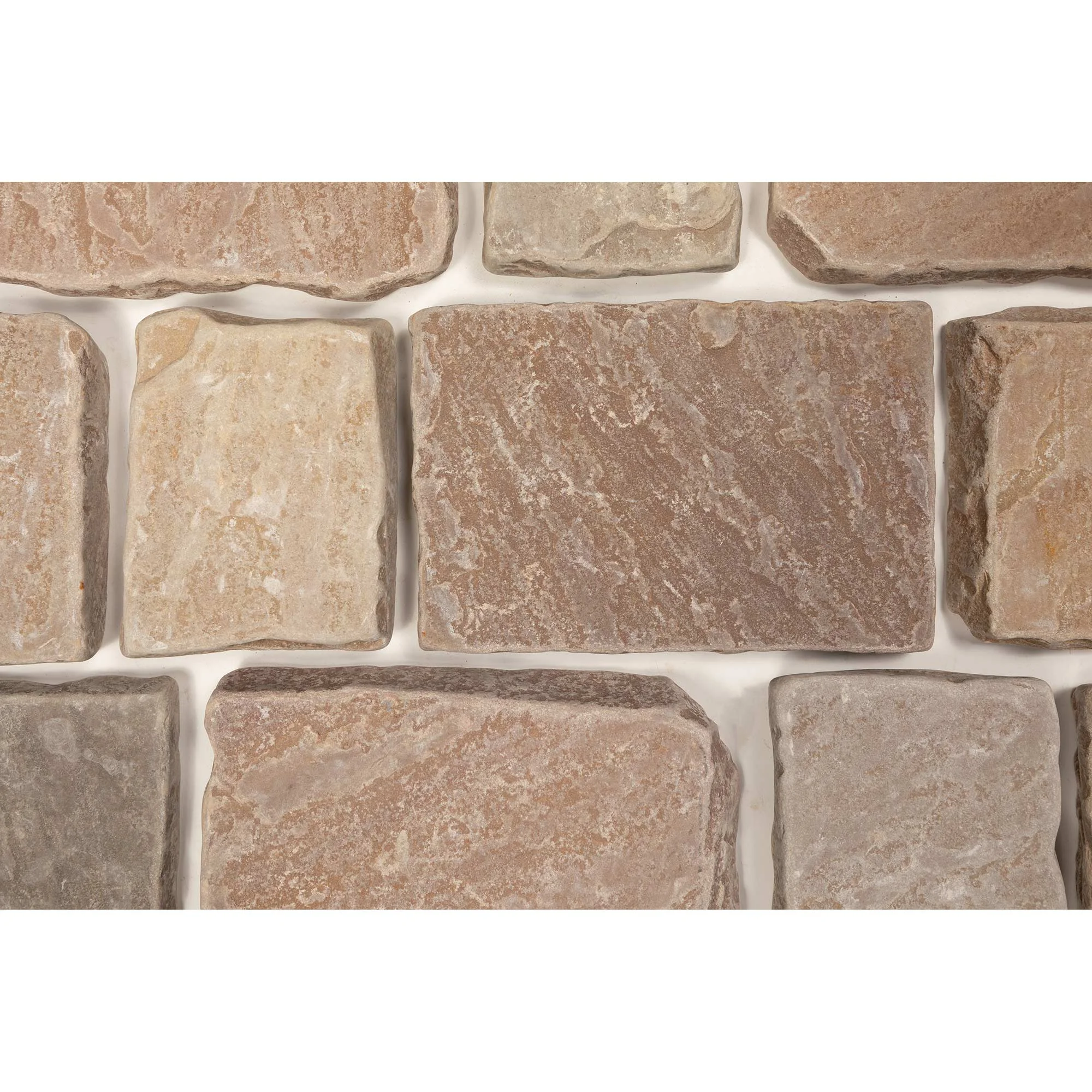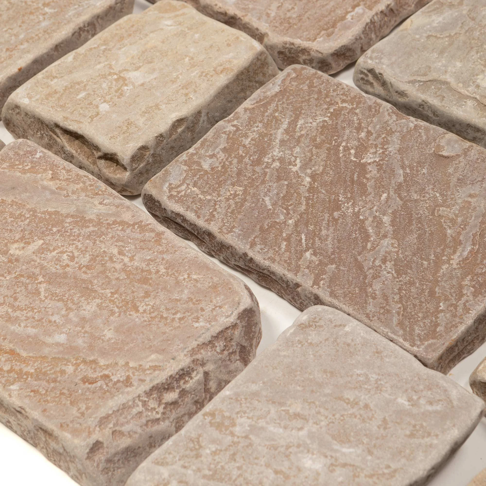 These Strata sandstone blocksetts are handchipped and then tumbled to give an antique, vintage appearance as a perfect alternative to reclaimed setts Camel shades are warm brown, beige and pink colours of sandstone.