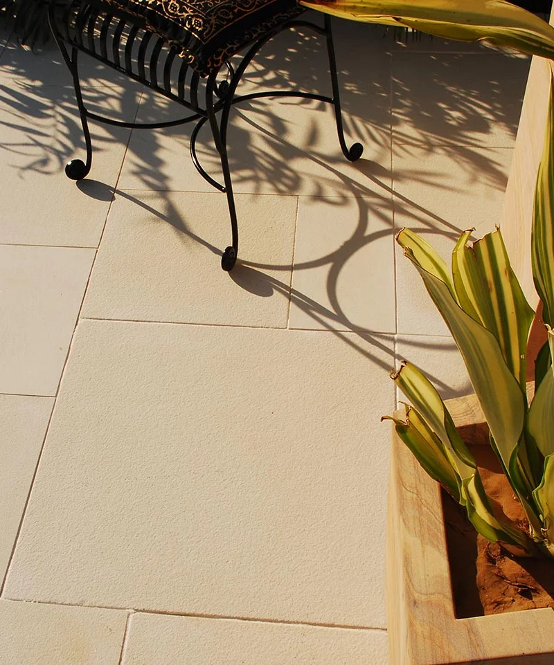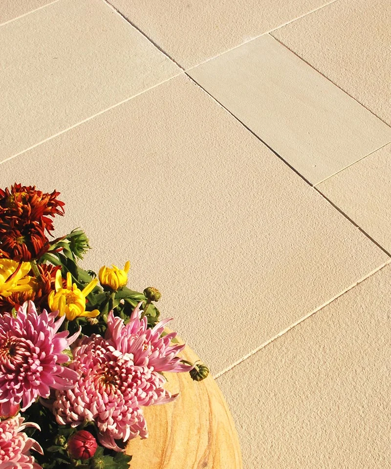 Rialto Sandstone Paving and Flooring by Strata is ideal for both indoor and outdoor use. Featuring Slip-Resistant textured and sleek sawn edges, perfect for any living space.